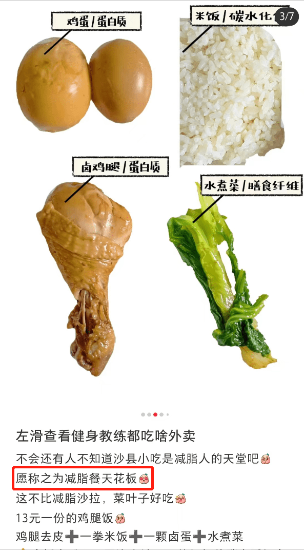 你一定還想不到,沙縣小吃還是小紅書網友們的“減脂餐”,簡簡單單一個雞腿飯,要蛋白質有蛋白質、要膳食纖維有膳食纖維。