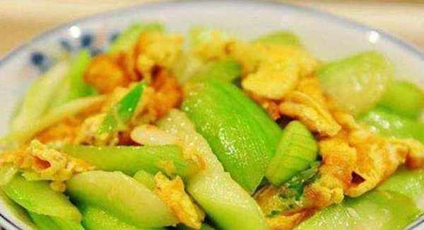 3、猛火將炒鍋加熱入油,待油溫升高,倒入絲瓜炒熟,加入已熟雞蛋同炒。