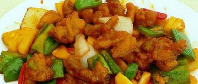 1、豬裡脊一面斜切花刀,切好翻面再切一遍。然後切成一口大小的肉塊。