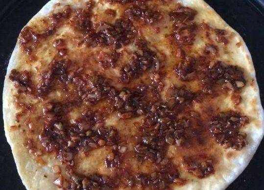 第七步,等餅加熱至鼓起的時候,翻個面,刷上一層醬汁,稍微加熱片刻,便可以取出來