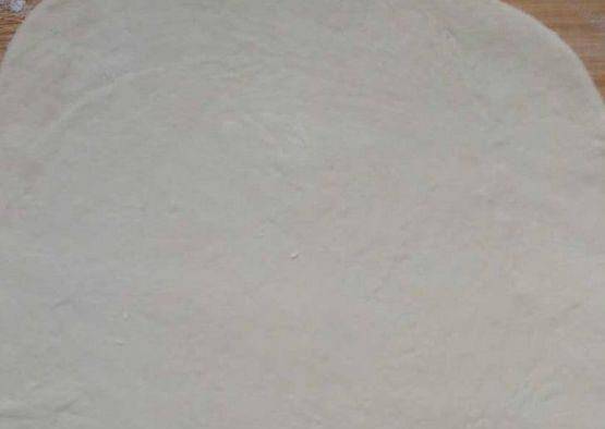 第五步,舀好需要的面粉量,一點一點的將準備好的清水加進去,按照平時和面的方法,將面團和的軟軟的,然後將和好的面團分成小份,取出其中的一份,用搟面杖搟成薄餅,搟的越來越好