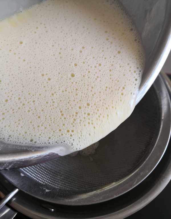 1、準備現磨豆漿提前過篩備用。
