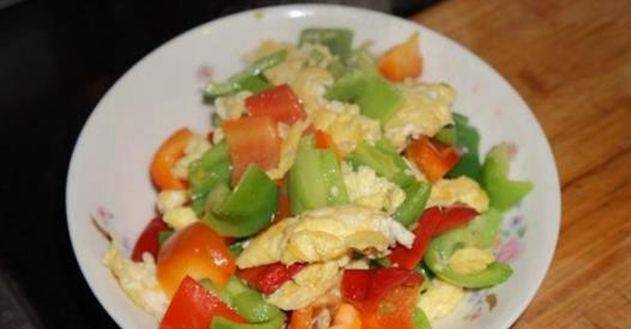 主料:雞蛋4個、青椒半個、紅椒半個、黃椒半個;