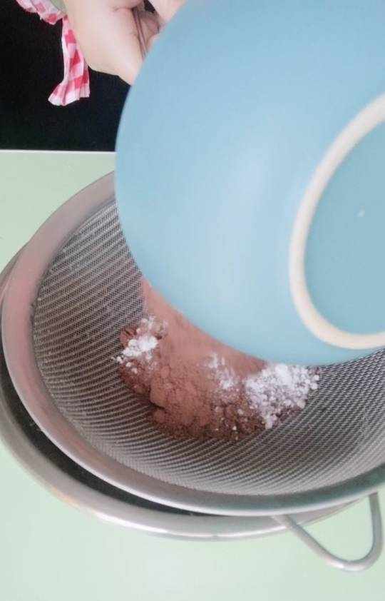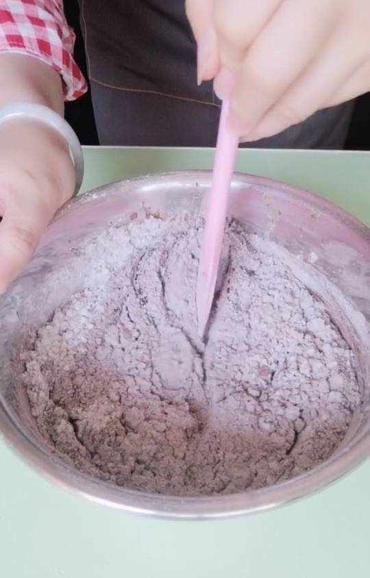 8.將低粉中加入可可粉。低粉可可粉過篩。