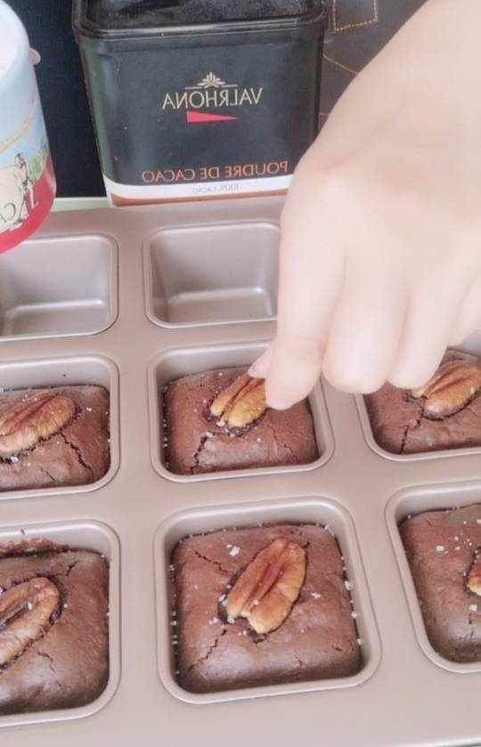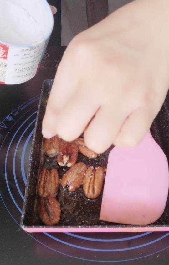 11.面糊上放上碧根果,這時候預熱烤箱170度10分鐘左右。