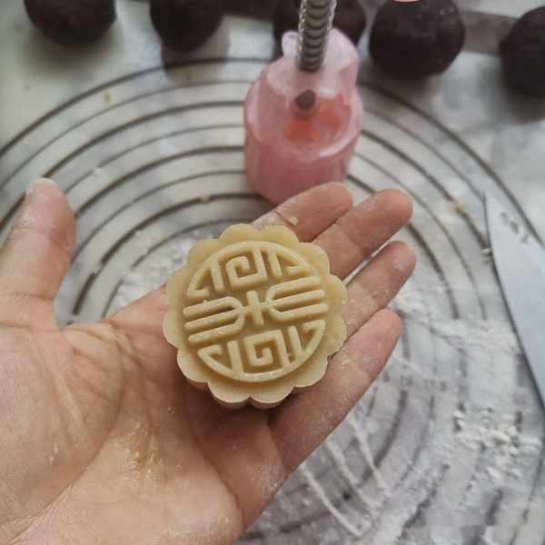 第七步:使勁壓出,月餅就做好了,月餅的模具有很多種,看自己的喜好來選擇就可以了。