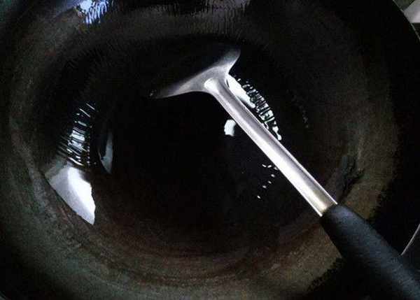 第二步,預熱炒鍋,倒上適量的食用油,端起鍋,轉動一下,讓油將鍋壁潤滑一遍
