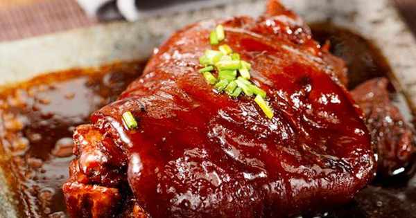 二是將豬蹄髈火燒泡洗刮皮,沖洗幹凈;三是將洗凈的豬蹄髈在清水中煮30分鐘左右,去血水,撈出瀝幹,趁熱在豬蹄髈上刷蜂蜜或抹甜酒釀,稍微醃漬後下油鍋炸至金黃,撈出瀝幹;四是炸過的蹄髈必須回水再煮20分鐘左右,使其皮軟;