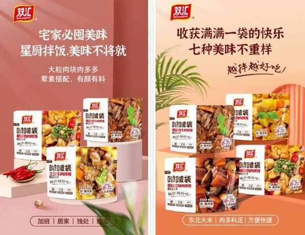 預制菜產品上,雙匯主要分為三大類,有半成品菜,比如蒜香排骨、蠔油牛肉等;有成品菜,比如即熱的紅燒肉、土豆牛肉等;還有方便速食類產品,比如魚香肉絲常溫拌飯、土豆牛肉等啵啵袋速凍拌飯等主食菜肴產品。
