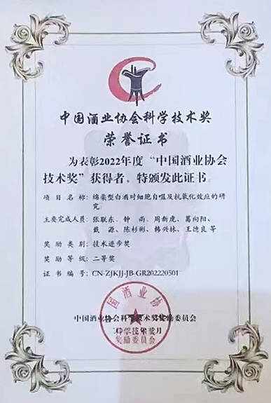 洋河股份技術成果“綿柔型白酒對細胞自噬及抗氧化效應的研究”,榮獲“中國酒業協會科學技術獎”;“基於高通量測序技術解析中高溫制曲細菌群落的演替規律”研究論文,榮獲“中國酒業協會科技進步優秀論文獎”;