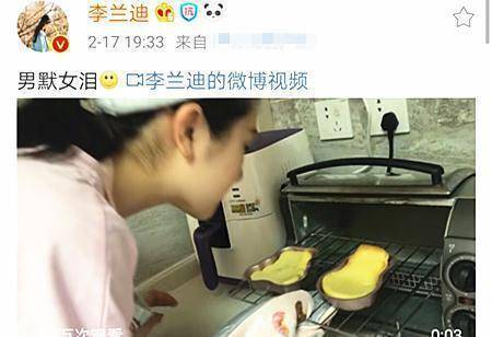 而李蘭迪則更逗瞭,蝸牛君也被李蘭迪做蛋糕“雞飛蛋打”逗笑瞭。李蘭迪分享瞭幾秒的小視頻,視頻中她小心翼翼地打開小烤箱取出本來賣相就不咋地的兩塊小蛋糕,正要上前聞一聞,結果沒端穩,右邊的小蛋糕模子掉瞭,一緊張,左邊的蛋糕模子也掉瞭……像極瞭做甜品的小編。