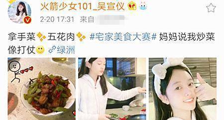 而火箭少女101的吳宣儀和孟美岐不僅人美歌甜舞蹈辣,宅傢日子也變身美廚娘。吳宣儀做瞭到有技術含量的炒五花肉,還被媽媽數落“炒菜像打仗”,一副鍋碗瓢盆到處放的既視感有沒有?
