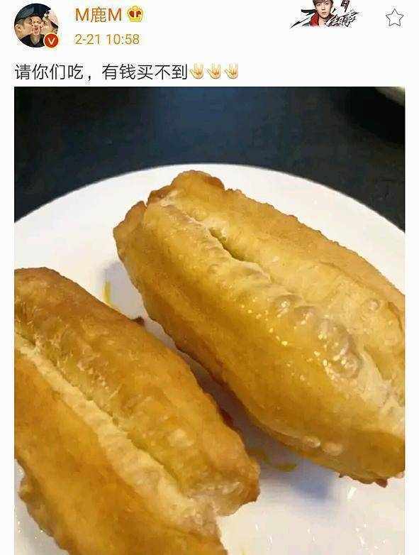 此外,因為宅傢買不到平時愛吃的油條的鹿晗,也被饞蟲逼得自己做瞭油條。看起來是不是賣相也相當不錯?鹿晗還說“有錢買不到”,可不咋的,此時還真是有錢買不到啊。