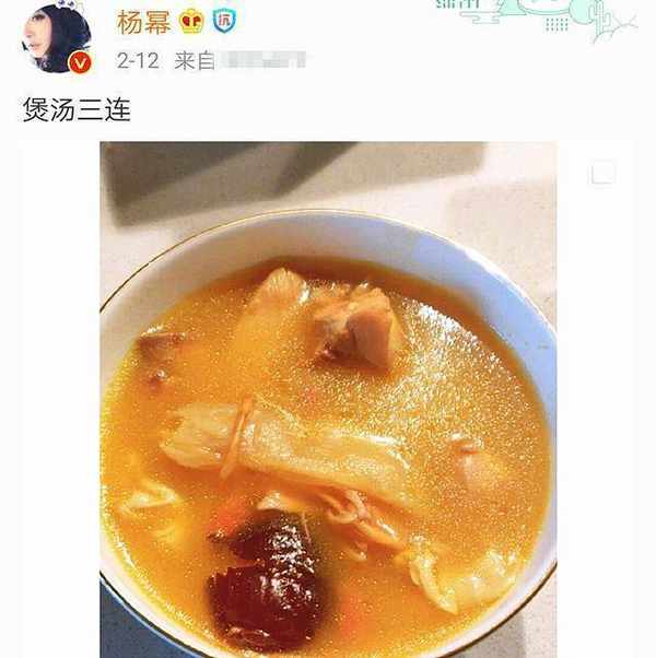 楊冪迷上瞭煲湯,發瞭好幾次煲湯圖片,看起來就美味。
