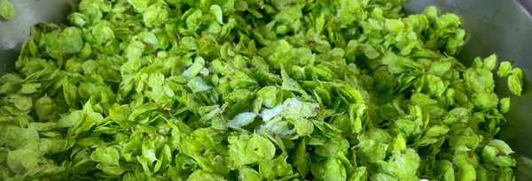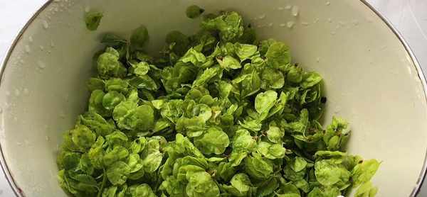第1步、首先把還是一樣,把榆錢先清洗一遍之後,再用清水加入食鹽面粉浸泡10分鐘,然後再次清洗幹凈。