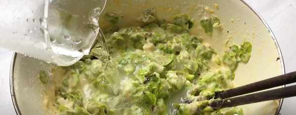 第4步、再然後也是一樣少量多次的加入清水進行攪拌,做成黏糊狀就可以瞭。