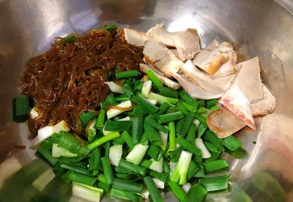 《食材準備》小蔥、粉條、豬肉、白面粉玉米面粉