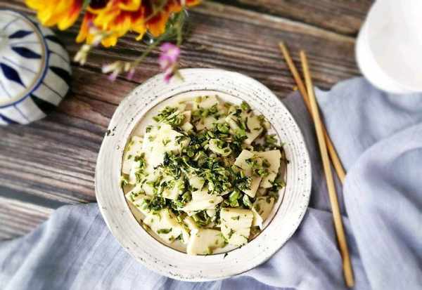 食材:薺菜、春筍、桃園建民西瓜醬、蔥薑、胡椒粉、鹽