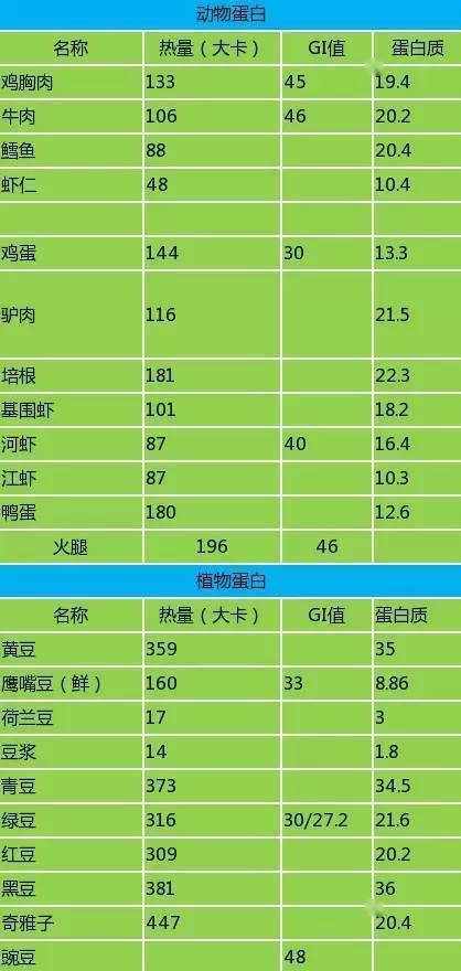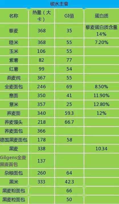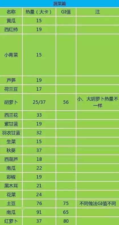 具體食物如下(熱量為每100g)