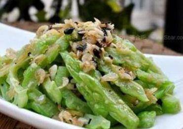 材料:苦瓜一條(重約300克)、蝦皮30克。剁辣椒、生薑、大蒜、蔥、雞精、蠔油、料酒、生抽各適量。