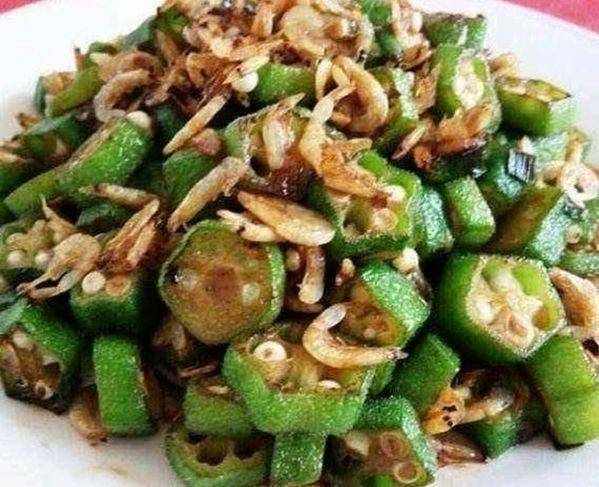 材料:秋葵、蝦皮、紅辣椒、蒜瓣