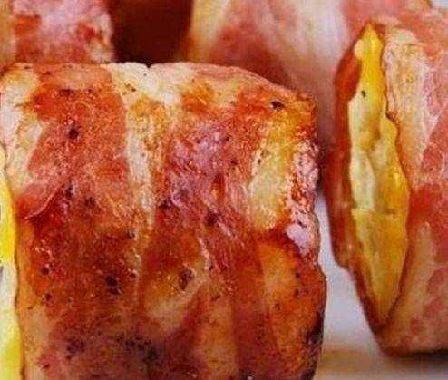 4、把培根玉米卷取出,刷上蜜汁醬,再入烤箱烤幾分鐘,就可以瞭.