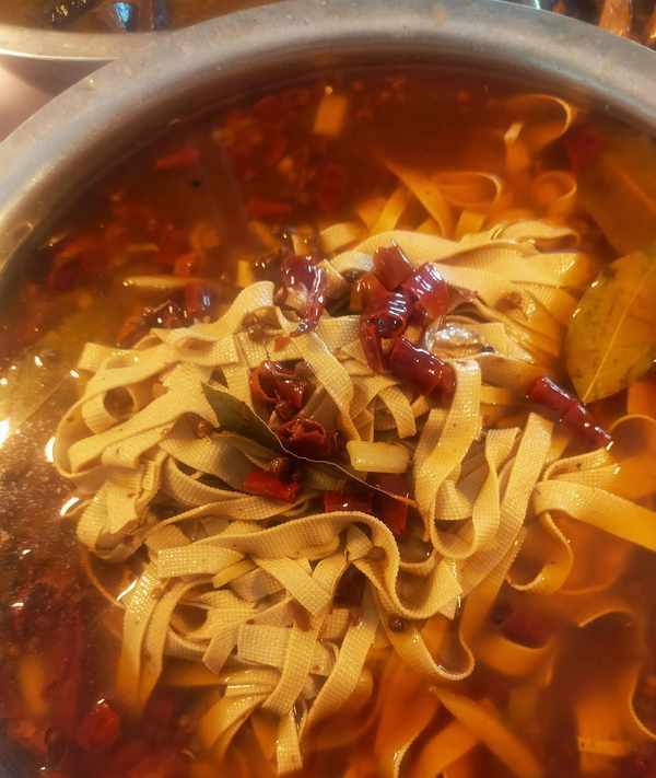 起鍋燒油下入調料炒香加入辣醬炒出紅油加水或高湯下入食材開始調味鹽味精雞粉十三香胡椒粉開鍋五分鐘即可出鍋。