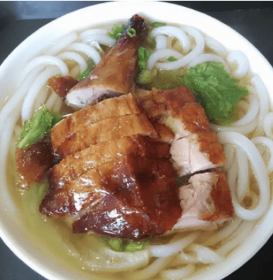 瀨粉,是東莞人壽宴的傳統食品,它的寓意是長長久久,多福多壽。它的主要原料是雞,最講究的是它的高湯,加入瞭許多藥材和香料熬制而成。燒鵝皮脆肉香、瀨粉爽滑有彈性,這兩種合起來美味誘人。這個湯絕對不要錯過,它的湯滲入瞭燒鵝肉的濃香,喝起來清甜而別有風味。