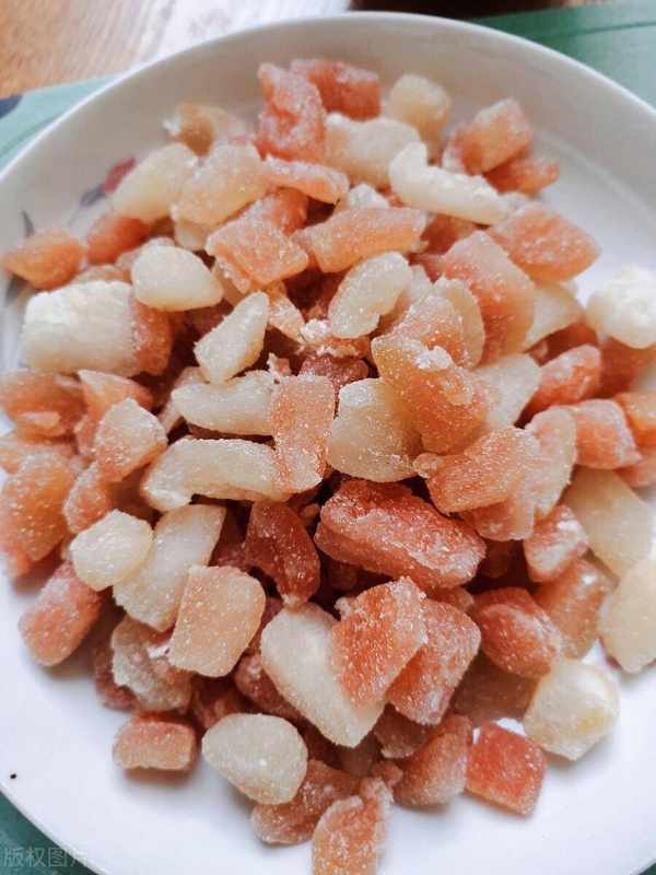 糖柚皮是石龍鎮著名的土特產之一,在民間一直名聲顯赫,它選用優質廣西沙田柚,去掉果肉取柚皮,將柚皮曬幹後醃制而成,百年老字號“李全和”所產糖柚皮最為有名。石龍糖柚皮色澤金黃、透明晶亮、甜而清香,粘韌而又爽滑,具有補中益氣、開胃健脾的功效。