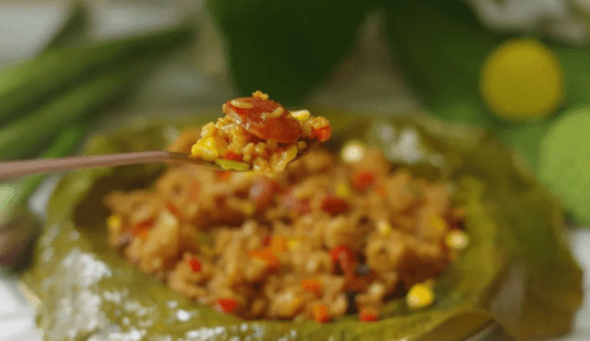 鮮蝦荷葉飯,這是廣東省東莞地區的名小吃。以東莞太平鎮制作的最為著名,鮮蝦荷葉飯清淡爽口,有荷葉的清香味,向來為廣州各茶樓酒傢著名的點心食譜之一。