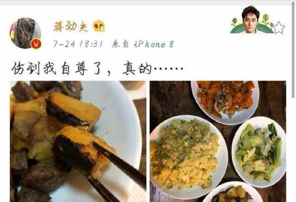 老人做瞭一盤看著像土豆咖喱,一盤生菜,一盤雞蛋和一盤牛肉。而且看得出來,做得很用心瞭。但成色距離美食還有距離哦,老人還表示,雞蛋咸瞭點不合適,哈哈哈,網友表示你女朋友吃過你做的菜嗎?不僅雞蛋咸瞭不合適,牛肉太老瞭也不合適,咖喱咸瞭也不合適。不過粉絲們看到他能發微博還是蠻開心的,有很多都說老人發微博太少瞭。