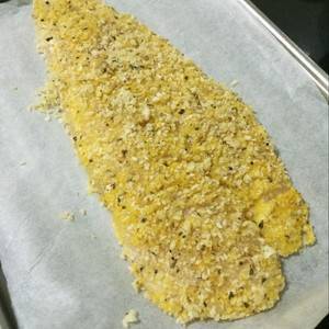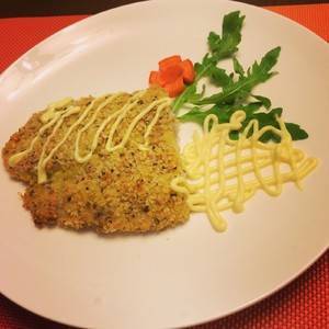 龍利魚適量、雞蛋適量、面粉適量、面包糠適量、裝飾用蔬菜適量、鹽適量、胡椒粉適量