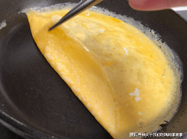 3、平底鍋倒入少量油,燒熱後把雞蛋液倒入鍋中,轉動鍋子鋪均勻,小火煎成雞蛋皮,把晾涼都煎至金黃後即可盛出,切成雞蛋絲。