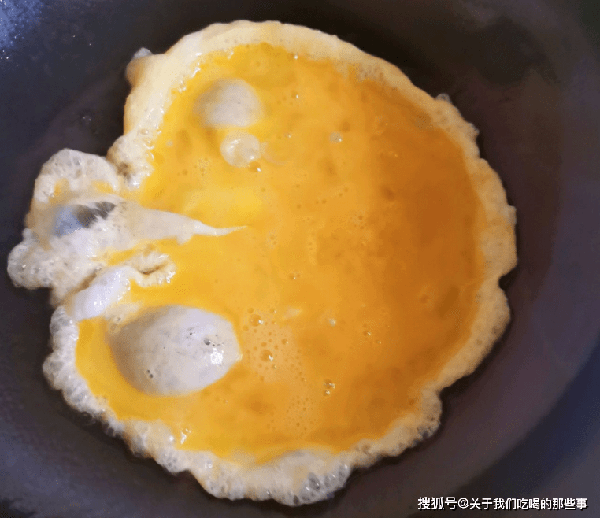 3、起鍋燒油,八成熱時倒入雞蛋液,大火煎熟,炒成大塊後盛出。鍋裡留底油,加入薑片煸香,倒入五花肉片,小火煸炒出油。