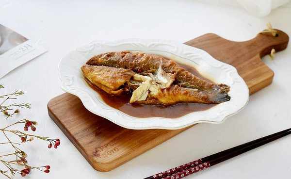 大火煮開後轉中火,慢燉至鍋中的湯汁快要收盡時關火。中途要翻一下面,讓魚的入味更均勻,註意,湯汁是快要收盡,不要完全收幹,鍋中要留點湯汁,因為那樣會糊鍋,前功盡棄,那樣就太可惜瞭,所以在最後,要守在鍋邊,經常晃動一下鍋,以免糊鍋哦!