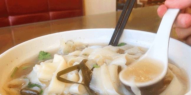 手工的面片,外柔內勁,一出場就自帶光環,入口滿是爽滑順溜。