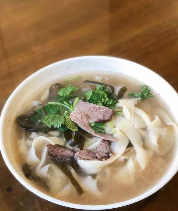 大碗寬面,是豪放的北方人標配,盛滿瞭濃白湯底和燴面,片片羊肉臥碗裡。