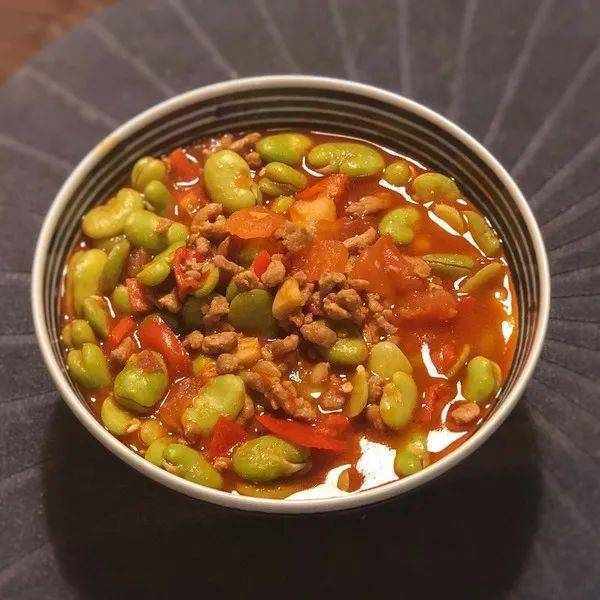 【剁椒肉末蠶豆煲】