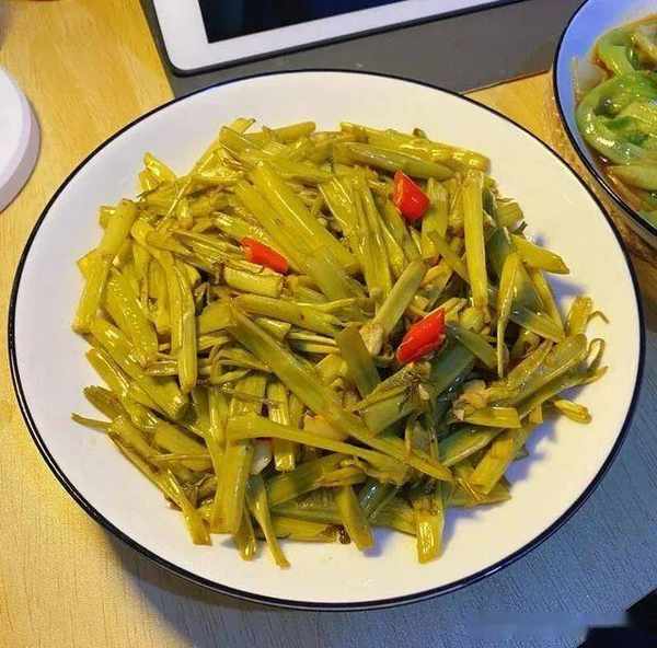 空心菜梗適量、泡壇豇豆適量、宴友食用油、泡壇生薑適量、泡壇辣椒適量、鹽少許、雞精適量