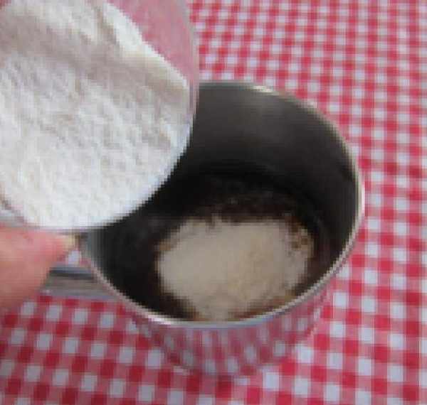 第6步、加入白糖和奶粉精拌勻。(糖和奶粉精可以自己的喜好有所增減,也可用甜牛奶代替)
