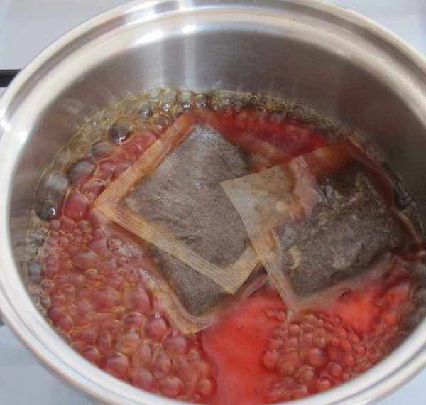 第4步、鍋中放入水,待煮滾放下紅茶袋蓋鍋蓋燜5分鐘。