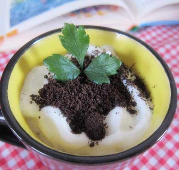 【盆栽奶茶】的外形像極一杯真的盆栽,在飲料之上,有攪碎的奧利奧餅粉末制成的“土壤”,再將小薄荷葉插在“土壤”上,盆栽飲料隨即形成。攪拌後奧利奧粉很吸水,一下子就懸浮於飲料中,不會影響口感,還非常滴特別呢!【種植一夜夢,在枕頭裡。種植一句活,在耳畔中,種植一絲愛,在心田上。種植的土壤沒有告訴你,開出的,往往無關我們。。。。。種下的。。。。】