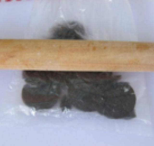 第3步、餅幹放入小袋子中,用搟面棍把餅幹搟成碎末。