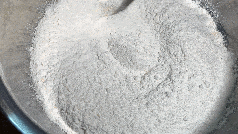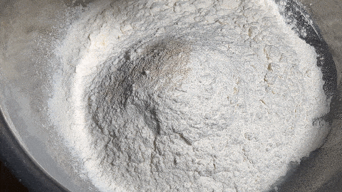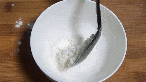 6. 在一個小碗中,加入兩勺面粉,加入食鹽