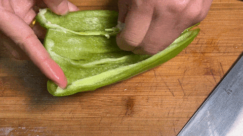 9. 接著再改刀切成青椒丁,切好放入盤中備用