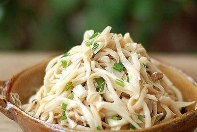 2.鍋內水燒開,倒入杏鮑菇焯熟後撈出放涼,杏鮑菇擠幹水份。