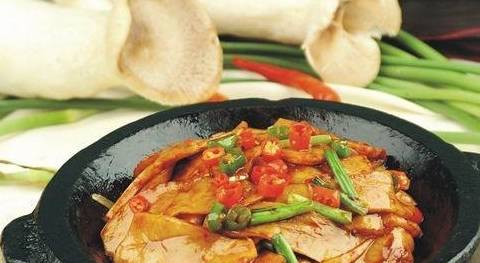 3.另起鍋放入少許油、加入副料煸炒出香味、加入炸好的菇片、加入調味料、加少許水略煮一下勾少許芡汁出鍋倒入加熱過的石鍋即可。