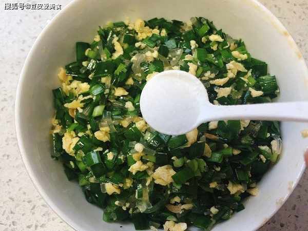 材料:韭菜250克,蛋4個,蝦皮1把,粉條1把,香油適量,鹽適量,雞精適量,五香適量,普通面粉350克。