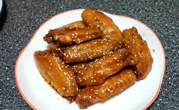3:裝盤後,在雞翅上撒點熟白芝麻點綴一下,如果不喜歡,就省略這一步。