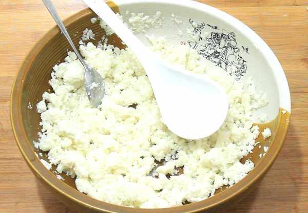 2.鍋內加入適量的清水,放上篦子把山藥放入鍋中,大火把水燒開以後轉小火蒸15分鐘。15分鐘以後把山藥蒸熟取出放入盆中,用勺子摁壓成山藥泥,山藥晾涼以後抓成泥,這樣山藥泥更加細膩。